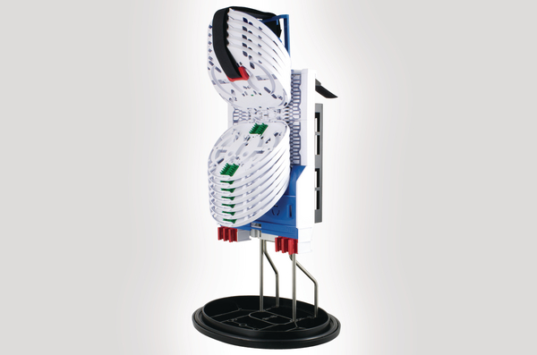 The FDN 59 Port Integrated Routing (IR) AB Length closure is supplied with a Polypropylene base. The base configuration of 58 round ports and 1 oval port covers a cable diameter range of 1.7 – 29.0mm when using Cablelok mechanical seals and 6.0 – 35.0mm when using heatshrink. The mounting system is manufactured from Grade 304 stainless steel and the backplane is an aluminium extrusion which can accommodate up to 36 SE-IR or 72 SC/SC-B trays. The position of the mounting system allows easy access for the routing of the fibre on to the trays. The trays and fibre optic routing module are white which makes it easy to see the colour of the fibre elements as they are routed through the positive fibre management system. Fibre slot retaining blocks guide fibre elements in to the IR system, the foam pad on the retainer is partially cut through to accommodate a range of fibre counts. All IR system cover plates are coloured blue identifying them as removable parts allowing access to the fibre, the fibre slot retaining block and tray retaining clips are coloured red to aid in identification if they are dropped. |