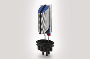 The FDN 59 Port B Length closure with basket is supplied with a Polypropylene base. The base configuration of 58 round ports and 1 oval port covers a cable diameter range of 1.7 – 29.0mm when using Cablelok mechanical seals and 6.0 – 35.0mm when using heatshrink. The mounting system is manufactured from Grade 304 stainless steel and can accommodate up to 24 Hellipse NZDF SE-A or SMF SE-A trays giving a maximum of 576 fibre splices based on 24 fibres per tray (when using Hellipse SMF SE-A trays). The tubed closure and the position of the mounting system allows for ease of access and traceability of the fibre on to the trays and the basket provides storage space for the storage of fibre loops. The trays are white which makes it easy to see the colour of the fibre elements as they are routed through the fibre management system. |
