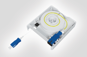 The outlet has a built-in fibre spool with 30m of 600µm clear fibre. The fibre cable is pre-terminated at both ends with a fibre connection point fixed in the outlet for the incoming fibre and a fibre connector on the fibre spool that can be run up to 30m within the property for router connection. The lid of the outlet has a built-in locking design that prevents the spool from winding once the lid is in place. Also provided with the Faint Fibre Outlet is a fibre management routing kit. Each of the ‘snap-off’ components in the fibre management kit provide safe fibre routing for corners and through walls. The FFO is a small single gang socket size IP20 outlet, which is manufactured from Polycarbonate + ABS V0 rated material. Tamper-proof latches on the side of the outlet secure the cover to the base and the overhang restricts the removal of any adaptors and connectors when the cover is in place. The base has adjustable keyholes to allow for ease of positioning and installation and each outlet is supplied with a standard fixing kit. |