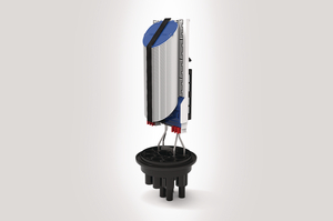 The FML Integrated Routing (IR) BC Length closure with basket is supplied with a Polypropylene base. The base configuration of 12 round ports and 1 oval port covers a cable diameter range of 4.8 – 29.0mm when using Cablelok mechanical seals and 6.0 – 35.0mm when using heatshrink. The mounting system is manufactured from Grade 304 stainless steel and the backplane is an aluminium extrusion which manages 24 SE-IR MKI 3A splice trays. The position of the mounting system allows easy access for the routing of the fibre on to the trays and the basket provides storage space for the storage of fibre loops. The trays and fibre optic routing module are white which makes it easy to see the colour of the fibre elements as they are routed through the positive fibre management system. Fibre slot retaining blocks guide fibre elements in to the IR system, the foam pad on the retainer is partially cut through to accommodate a range of fibre counts. All IR system cover plates are coloured blue identifying them as removable parts allowing access to the fibre, the fibre slot retaining block and tray retaining clips are coloured red to aid in identification if they are dropped. |