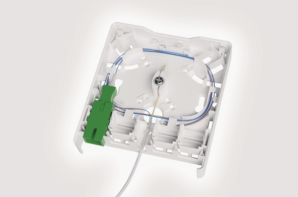 | Application | The wall mounted fibre optic wall outlet with a pre-terminated connection cable provides a internal connection point in the end user house or apartment. The pre-terminated cable allows the installer to complete all splicing of fibre cable away from the customer premises. |