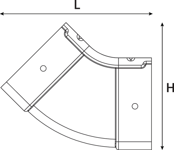 | Application | Vertical inside elbows are used for creating a vertical upward transition from GigaDuct horizontal routes. This model offers a 45⁰ bend and is supplied with cover. |