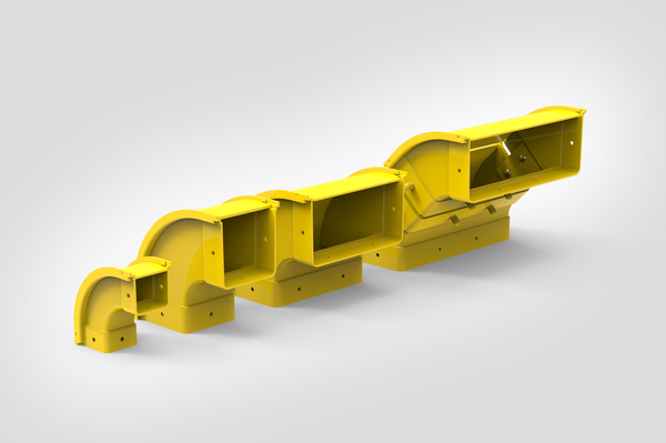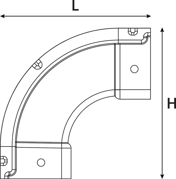 | Application | Vertical outside elbows are used for creating a vertical downward transition from GigaDuct horizontal routes. This model offers a 90⁰ bend and is supplied with cover. |