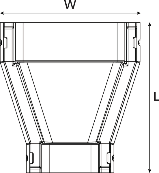 - Facilitates transition from larger 100mm to smaller 50mm horizontal straight duct