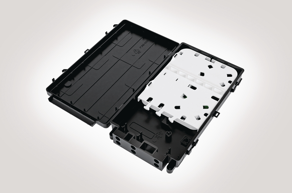 | Technical Description | The Multi Customer Connection Enclosure (MCCE) is a Building Entry Point (BEP) enclosure which offers the flexibility of managing both Point to Point (P2P) or Point to Many Point (P2MP) network configurations. Supplied with or fibre management trays which support a maximum 6 x SC Simplex or LC Duplex adaptors and a maximum of up to 12 3A splices. The closure is manufactured from UV stable ABS with a hinged lid which locks in the open position to allow for quick and clear access to the internal fibre. The closure has 6 entry/exit ports at the bottom of the closure which are suitable for cables and ducts up to a maximum diameter of 8mm. A loop through facility allows for single fibre elements to be removed and spliced whilst the remaining fibres can be fed on to the next connection point and a splice capacity for up to 12 3A splices. Mechanical fixing is provided to secure all incoming/outgoing cables/blown fibre ducts and to provide strain relief where necessary. |