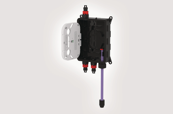 | Technical Description | The MDCN-1B is a compact hardened connector enclosure which offers IP68 environmental protection. The enclosure has three IP9 ports and a single compression port at the base of the unit. The IP9 ports are fitted with a SN duplex adaptor to allow for BiDi or duplex connections. The incoming compression port is supplied with 4.0 – 6.0mm cable/duct seal. The enclosure is supplied with a fibre splice tray which will manage a maximum of 12 x 3A 60mm splices for use where pre-connectorised fibre units cannot be deployed and the base has moulded retaining clips for improved fibre management. The enclosure is manufactured from UV stable PC/ABS and is supplied with a Gortex breather eliminating any internal moisture build up. |