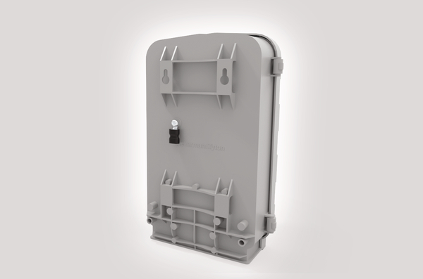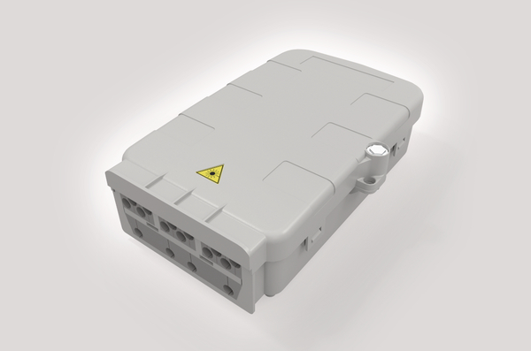 A 241 x 161 x 72mm (H x W x D) enclosure manufactured from UV stable light grey (RAL7035) polycarbonate with an IP55, IK08 and V0 rating. The enclosure has a completely detachable lid which can also be snapped back in to position using the snap back hinges allowing unrestricted access to all fibre management areas. The enclosure has 3 separate management areas for inbound cable, fibre splice management and drop cable (customer connection) management. The inbound cable management area has a dedicated cable entry port which supports both cable end and mid-span applications with loop storage capacity for up to 1.5m* of excess fibre and the entry port is sealed with a cable entry kit to maintain the IP55 rating. The fibre splice management area has capacity for a maximum of 12 x 3A or 24 ANT splices and maintains positive fibre management (30mm minimum bend radius) throughout. The tray has a crossover facility which allows for alternative routing requirements and a fibre storage capacity of 1.5m for 250µm fibre and 1.0m of 900µm fibre. The drop cable management area presents 12 SC APC Simplex adaptors for connection to industry standard pre-terminated drop cables and a maximum of 3 PLC splitter (60mm x 7mm x 4mm) can be fitted on the inside of the management area. The drop cable management area cover prevents access to the network cables and splicing area and the adaptors are angled and spaced to allow for inspection prior to connection. Anchor guides are provided for securing the drop cables (maximum diameter 8.0mm) and an integral seal maintains the IP55 rating. |