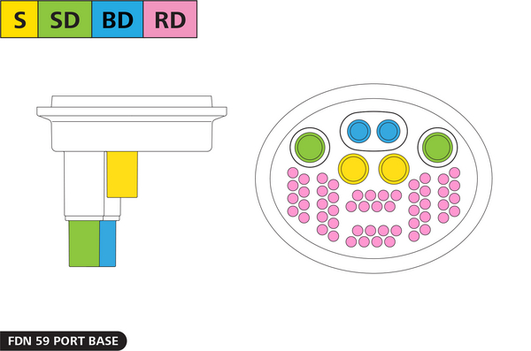 The FDN/FRBU/FST Port Opening Tool Kit provides a safe, quick and easy use solution for opening the round ports on the 16/59 Port FDN, FRBU 16 Port and FST 13 PortDome Closures. The port opening tool kit is supplied with a single handle and 5 cutter assemblies for opening S/B, SD, RD, BD and ST ports (see base diagrams for port identification). The cutter assemblies are replaceable parts which can be purchased separately once the original assemblies have reached the end of their life. |