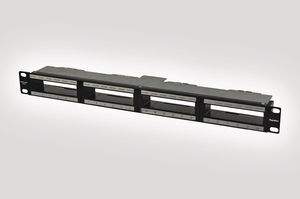 The RapidNet 4 port Shielded Patch Panel accommodates four 6 port Category 6A cassettes. The panel offers dual labelling fields for each cassette and is supplied with Cage Nut fixings as standard. The RapidNet Cassettes simply push into the panels, snapping in with a push down clip. A fully loaded panels presents 24 Category 6A RJ45 ports. |