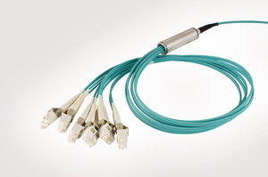 All adaptors are keyed so they connect in the correct orientation ensuring correct polarity for the link. The fan out unit includes integral strain relief and the furcation tubing on the individual fibres means that the breakout fibres can be used as a standard patch lead. NB. Part numbers shown are for 10m length, other lengths are available. The standard fan out breakout length is 0.5m for cable lengths between 2m to 5m and 1m for cable lengths over 5m. |
