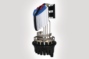 The UFC Integrated Routing (IR) BC Length Single Stack closure with basket is available with a Cablelok (Polypropylene) or Heatshrink (Flame Retardant Polypropylene) base. The base configuration of 28 round ports and 2 oval ports covers a cable diameter range of 4.0 – 29.0mm when using Cablelok mechanical seals and 6.0 – 35.0mm when using heatshrink. The mounting system is manufactured from Grade 304 stainless steel and the backplane is an aluminium extrusion which manages 18 SE-IR MKI 3A splice trays. The position of the mounting system allows easy access for the routing of the fibre on to the trays and the basket provides storage space for the storage of fibre loops. The trays and fibre optic routing module are white which makes it easy to see the colour of the fibre elements as they are routed through the positive fibre management system. Fibre slot retaining blocks guide fibre elements in to the IR system, the foam pad on the retainer is partially cut through to accommodate a range of fibre counts. All IR system cover plates are coloured blue identifying them as removable parts allowing access to the fibre, the fibre slot retaining block and tray retaining clips are coloured red to aid in identification if they are dropped. |