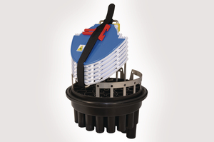 The UFC A Length Single Stack closure is available with a Cablelok (Polypropylene) or Heatshrink (Flame Retardant Polypropylene) base. The base configuration of 28 round ports and 2 oval ports covers a cable diameter range of 4.0 – 29.0mm when using Cablelok mechanical seals and 6.0 – 35.0mm when using heatshrink. The mounting and support system is manufactured from Grade 304 stainless steel and is supplied 6 x NZDF SE-A trays giving a maximum of 72 fibre splices. The tubed closure and position of the mounting system allows for ease of access and traceability of the fibre on to the trays. The trays are white which makes it easy to see the colour of the fibre elements as they are routed through the fibre management system and on to the trays. |