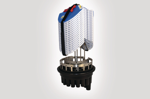 The UFC BC Length Double Stacked closure is available with a Cablelok (Polypropylene) or Heatshrink (Flame Retardant Polypropylene) base which is fitted with a support ring which allows for fibre break-out manifolds to be secured within the closure. The base configuration of 28 round ports and 2 oval ports covers a cable diameter range of 4.0 – 29.0mm when using Cablelok mechanical seals and 6.0 – 35.0mm when using heatshrink. The mounting and support system is manufactured from Grade 304 stainless steel and is supplied 36 x SMF SE-A trays giving a maximum of 864 fibre splices. The tubed closure and position of the mounting system allows for ease of access and traceability of the fibre on to the trays. The trays are white which makes it easy to see the colour of the fibre elements as they are routed through the fibre management system and on to the trays. |