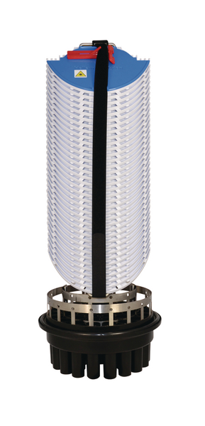 The UFC C Length Double Stacked closure is available with a Cablelok (Polypropylene) or Heatshrink (Flame Retardant Polypropylene) base. The base configuration of 28 round ports and 2 oval ports covers a cable diameter range of 4.0 – 29.0mm when using Cablelok mechanical seals and 6.0 – 35.0mm when using heatshrink. The mounting and support system is manufactured from Grade 304 stainless steel and is supplied 72 x NZDF SE-A trays giving a maximum of 864 fibre splices. The tubed closure and position of the mounting system allows for ease of access and traceability of the fibre on to the trays. The trays are white which makes it easy to see the colour of the fibre elements as they are routed through the fibre management system and on to the trays. |